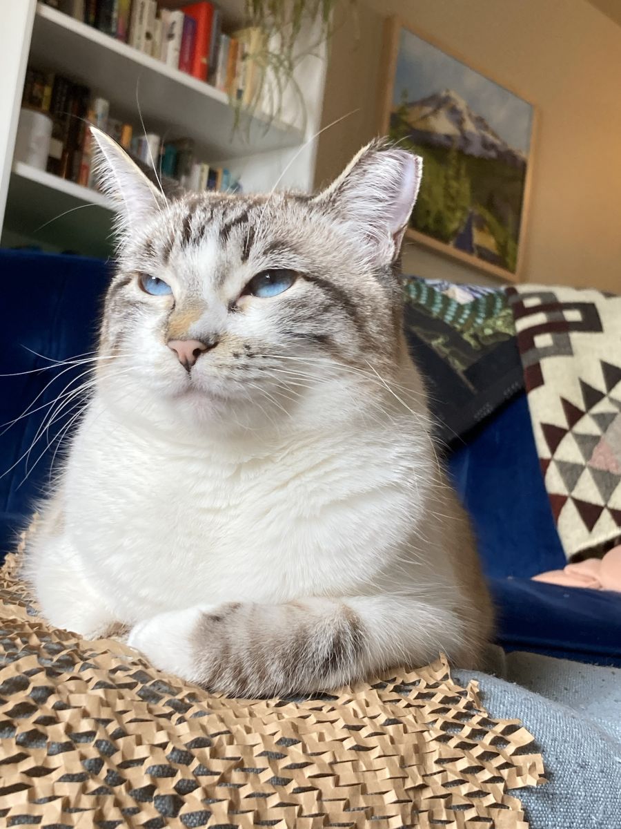 · Always smiles when chatting with her kitty Little Lady Lyra.